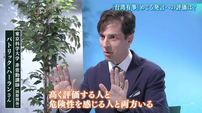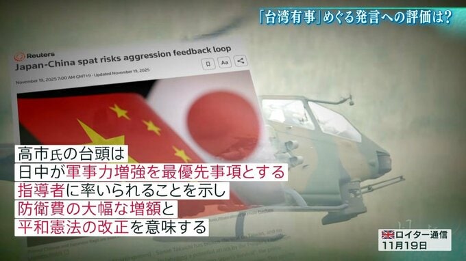 「世界の評価も国内と一緒で割れている。『もっと高市さんみたいにはっきりと強い発言で(中国を)牽制すべきだ』、『これは今までの日本と違う』、『日本は地域安定のリーダーになりつつある』という声もあります。高く評価する人と、危険性を感じる人、両方いる」