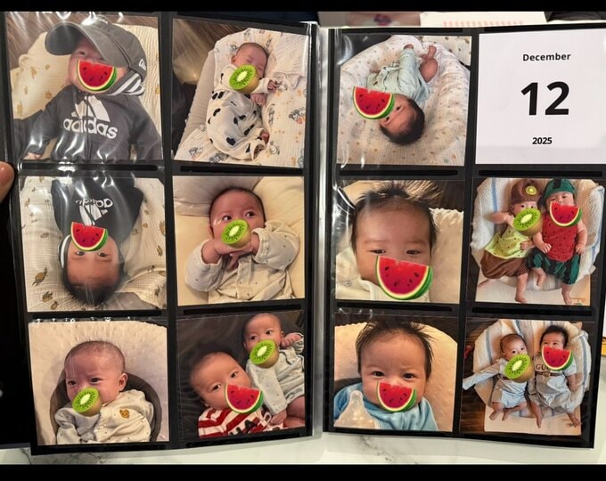 さらに中川さんは、家族アルバムアプリ「みてね」で作成したアクリルスタンドを「推しのアクスタ」として紹介。「画像だけでなく紙でかたちになるのが最高。親バカが捗ってしまう、、!」と、12月のカレンダーとともに成長を記録する幸せを素直に表現しています。
