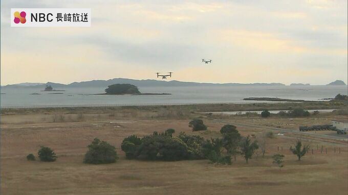 視察では、水陸両用車への搭乗や輸送機・オスプレイを使った訓練の様子を確認。水陸機動団の運用などについて説明を受けました。