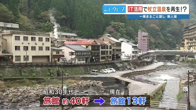 最盛期には約40軒の旅館があった杖立温泉。現在は13軒にまで減っています。