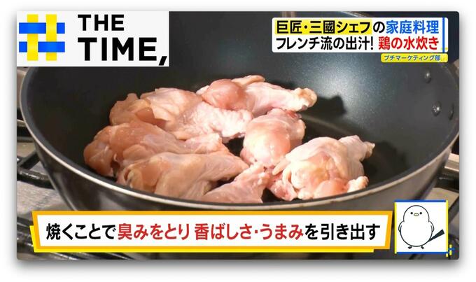 お決まりの三國ギャグを頂いたところで、ポイントは「手羽元を煮る前にフライパンで焼く」と三國シェフ。