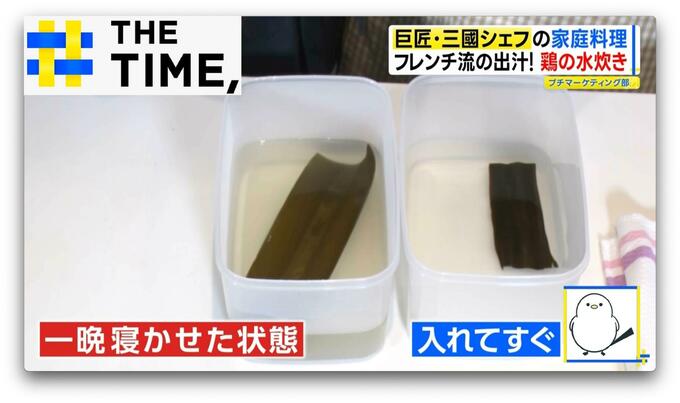 「昆布はグルタミン酸という“うまみ”を持っていて、鶏肉はイノシン酸を持っている。だからこれで出汁ができている」