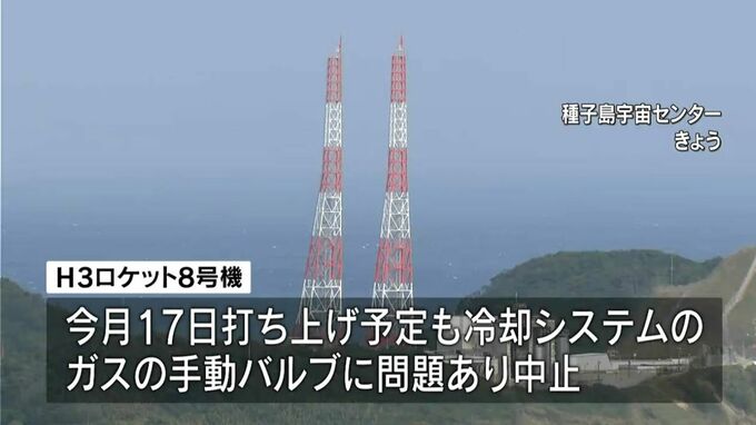 H3ロケット8号機は今月17日、種子島宇宙センターから打ち上げられる予定でしたが、地上の冷却システムにあるガスの手動バルブの操作に問題があったため、直前で中止されました。