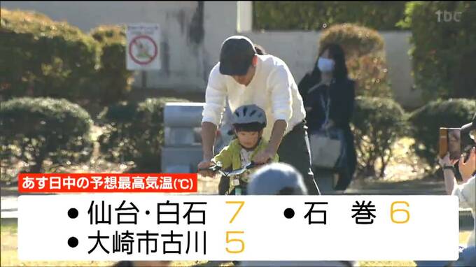 しかし22日は一転して寒気が流れ込み、日中の最高気温は仙台で7度など21日より10度以上も低くこの時期らしい寒さが戻る見込みです。