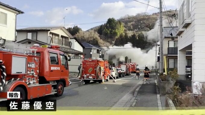 現場は国道396号近くの住宅が密集する地域で、付近の道路では消火活動のため交通規制されるなど、辺りは騒然としていました。