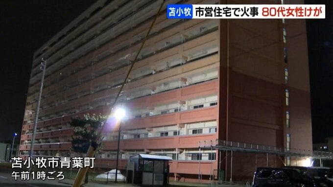 21日夜遅く、北海道苫小牧市の市営住宅の1室から火が出て、この部屋に住むとみられる80代の女性がけがをしました。仏壇付近の焼け方が激しいということです。火事があったのは、苫小牧市青葉町1丁目にある11階建て…