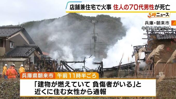 22日昼前、兵庫県朝来市のJR山陰線のそばに建つ住宅兼店舗で火事があり、70代の男性が死亡しました。