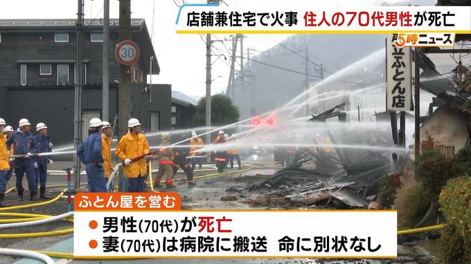 この火事で、火元の家でふとん店を営む70代の男性が死亡。70代の妻も意識はあったものの、病院に搬送されました。
