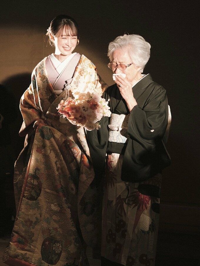 更に「アメリカから母も駆けつけてくれて、93歳のおばあちゃんにも花嫁姿を見せることができて 本当によかった…」と綴りました。