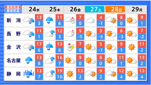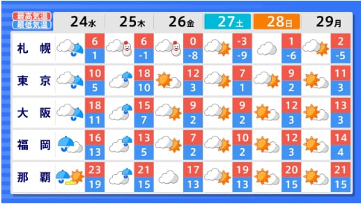 北海道地方、東北地方、関東甲信地方では「この時期としては10年に1度程度」の著しい高温となる可能性 年末年始にかけて 12月29日頃~ 気象庁発表【早期天候情報】全国の天気を地方ごとに テレビユー山形 2025年12月22日(月) 15:00 国内 ■全国の天気を地方ごとに 画像はTBS NEWS DIG Powered by JNNより 画像ありの記事を最初から https://newsdig.tbs.co.jp/articles/-/2363306?display=1