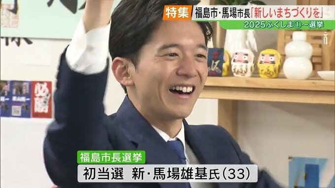 そして県都・福島市では、新たなリーダーが誕生しました。平成生まれの33歳。馬場雄基さんです。衆議院議員を辞職して臨んだ選挙では、現職におよそ1万5000票の差を付けました。福島市では歴代最年少、全国の都道府県庁所在地で最も若い市長です。