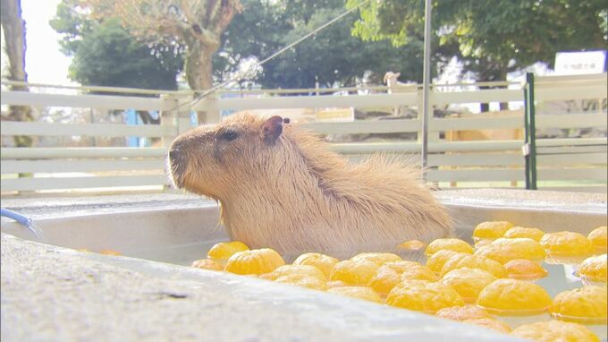 ゆず湯につかった姿を見られるのは22日までですが、温泉に浸かったカピバラと触れ合える「カピバラ温泉」は来年3月中旬まで楽しめます。