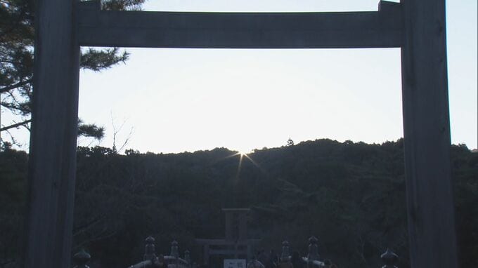約400人が待ち構える中、まもなくして宇治橋と鳥居を一直線に結ぶように日の光が差し込みます。午前7時45分ごろ、集まった約1200人がこの絶景を目にしました。