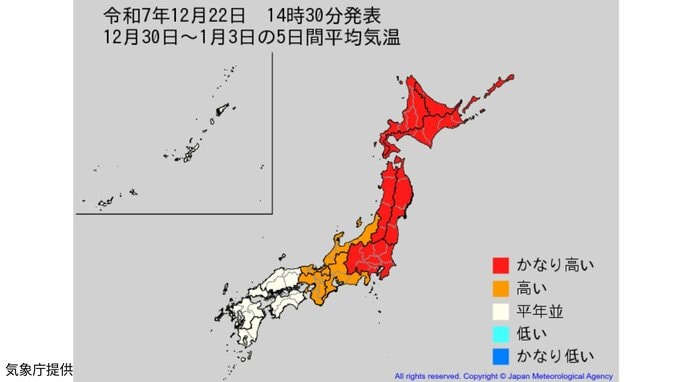 関東甲信地方 12月29日頃から かなりの高温