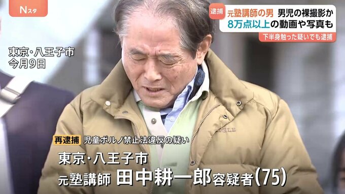 小学生の男の子の下半身を触ったとして逮捕された、当時、塾講師だった75歳の男が男の子の裸を撮影したとして、再逮捕されました。再逮捕されたのは田中耕一郎容疑者(75)で、今年10月、東京・あきる野市の河川敷…