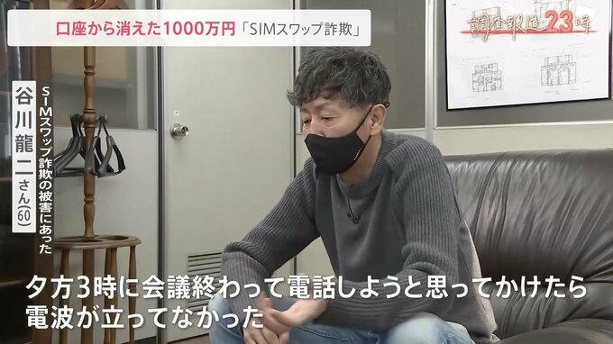 日本でも既にSIMスワップ詐欺の被害が出ていた。神戸市で港湾運送の会社を経営する谷川龍二さん。2022年7月、突然、携帯電話が使えなくなったという。