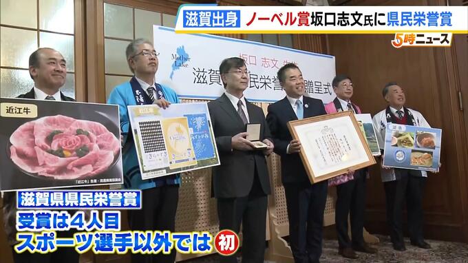 ノーベル賞を受賞した滋賀県出身の坂口志文さんに「県民栄誉賞」が贈られました。 大勢の職員らに迎えられたのは、ノーベル生理学・医学賞を受賞した大阪大学の坂口志文特別栄誉教授(74)です。 長浜市出身の…
