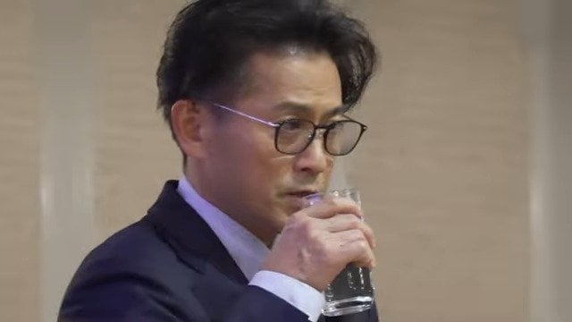 もちろん焼酎ではなく、コップに注いだミネラルウォーターをクッと飲み干し、笑いを誘う山口さん【画像⑦⑧⑨】。