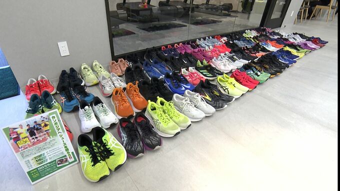 カンボジアにランニングシューズを届けようという取り組みです。岡山市北区のスポーツ用品店で贈呈式が開かれました。