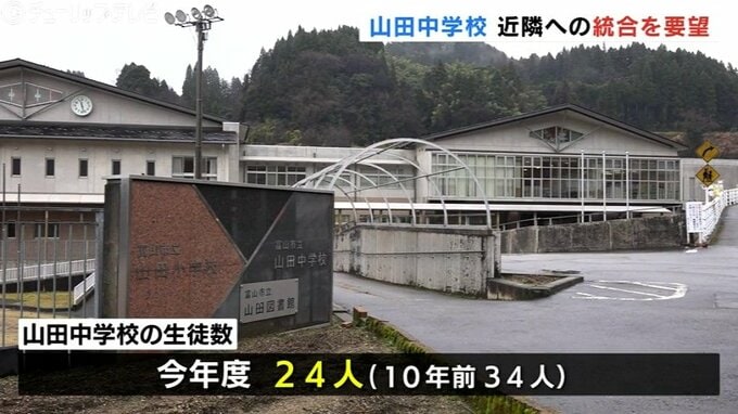 富山市の山田中学校について地元有志が近隣中学校との統合を市に要望です。申入書では生徒が城山中学校と八尾中学校に通えるよう通学区分を分けることや、スクールバスの運行などを求めています。山田中学校の生徒…