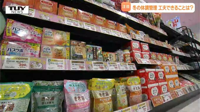 スーパーでは冬におすすめの食材が並ぶ中、入浴剤やアイマスクなどカラダを温めながらリラックス効果が期待できるアイテムも人気を集めているそうです。