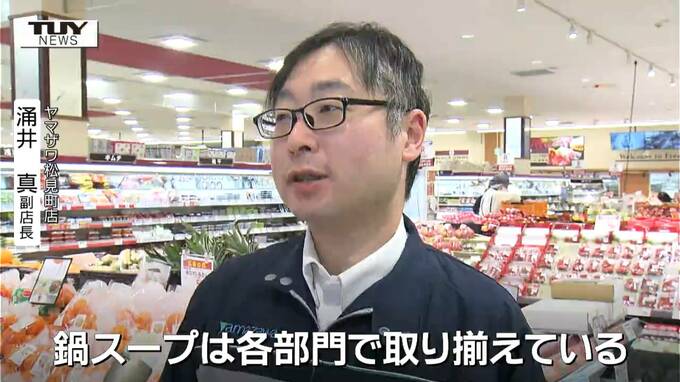 ヤマザワ松見町店 涌井真 副店長「冬と言えば寒くなってくるので体をあたためるのが一番大事なので鍋スープは各部門で取り揃えている」