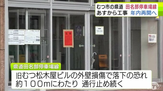 地震で全面通行止めの青森県むつ市「県道田名部停車場線」年内をめどに片側交互通行で再開の見通し 県が23日から緊急安全対策工事を実施 『JR八戸線』は22日朝から一部区間で運転再開 青森テレビ 2025年12月22日(月) 21:05 国内