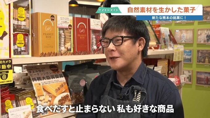 タンクマおかしマーケット 松木秀生さん「当店で扱っている約30店舗の商品の中では、常にトップ3に入るほど売れている人気の商品です。食べ出すと止まらない、私も好きな商品です」
