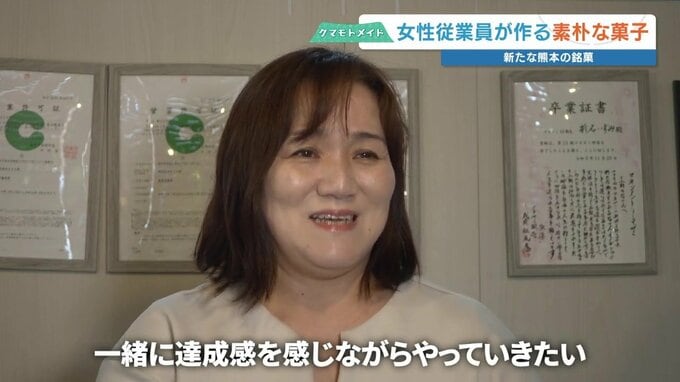 新名さん「地域の食材を使った新たな味のピーナッツボンを試作して展開しています。外務大臣賞という日本が誇る賞を頂いたので、熊本のお菓子がすごいということを、日本全国と海外に届けていきたい」