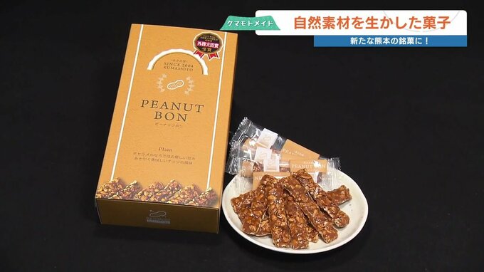 新名さん親子の思いがたっぷりと詰まった「ピーナッツボン」。 新たな熊本の銘菓を目指し、自然素材を生かしたお菓子を作り続けます。