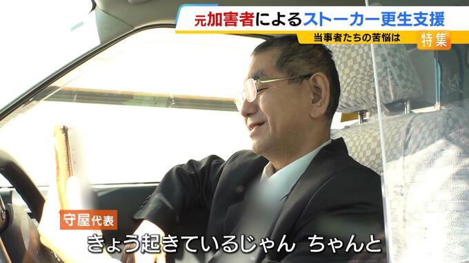 普段はタクシー運転手として働く守屋さん。休憩の時間を使って更生支援を行い、24時間当事者たちの声に耳を傾けています。さらに、同意した人は、GPSアプリで守屋さんに位置情報を共有。被害者の自宅に近づくなど不審な動きをした場合、警察に情報提供できる体制を整えています。