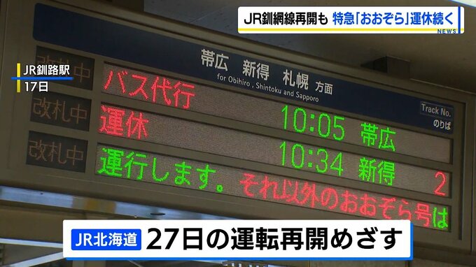 JR北海道は当初、年末年始で利用者が増える27日までに運転を再開したいとしていましたがまだ、再開のめどはたっていないということです。