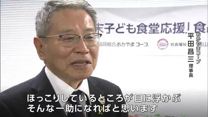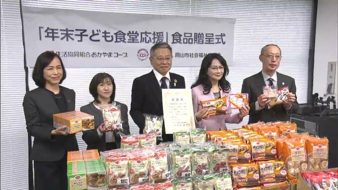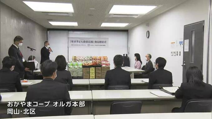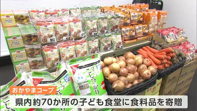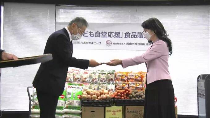 コロナ禍や物価高騰の中、厳しい運営状況にある“子ども食堂”を応援しようと、「おかやまコープ」が食料品を贈りました。