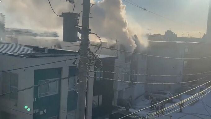 札幌市の住宅街で23日朝、3階建てのアパートから出火し、消防が消火に当たっています。