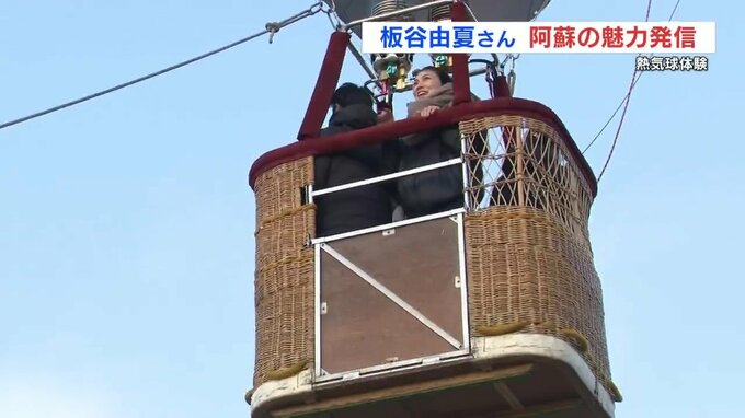 映画やテレビドラマなどで活躍している俳優の板谷由夏さんが、撮影で熊本県阿蘇市を訪れ、熱気球を体験しました。