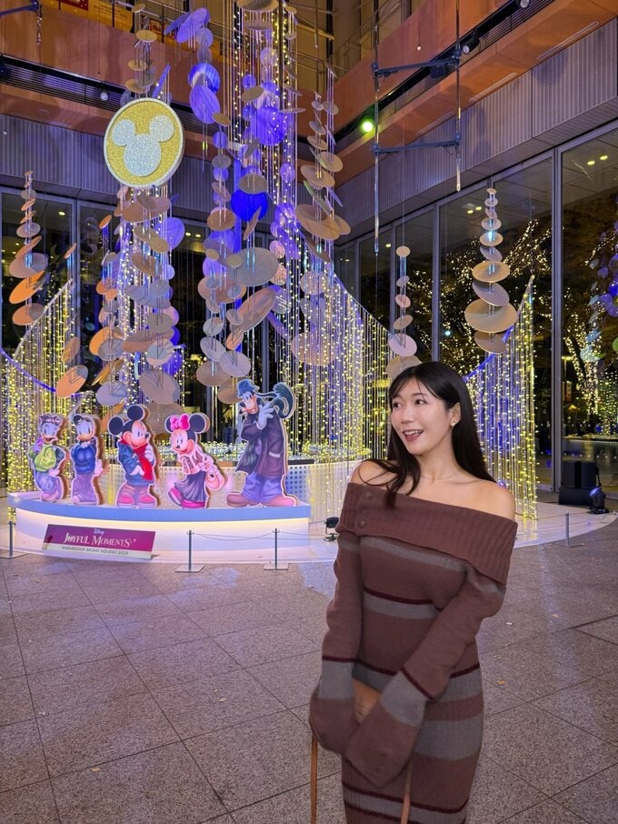 穂川さんは、東京・丸の内に設けられたディズニーのクリスマスのイルミネーションの前に立つ写真を添えて、「今年のクリスマスはみんなどう過ごすの〜?」と問いかけました。