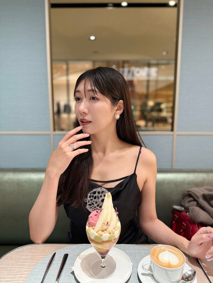 また別の投稿では、仕事終わりにカフェに立ち寄りパフェを食べた写真を投稿。