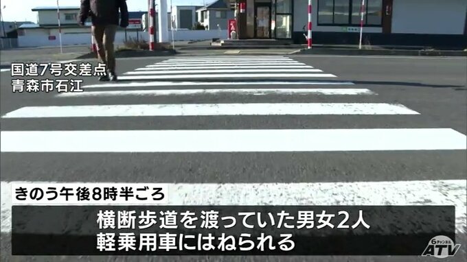 国道7号交差点で横断歩道を渡っていた男女2人が軽乗用車にはねられ死亡 青森市