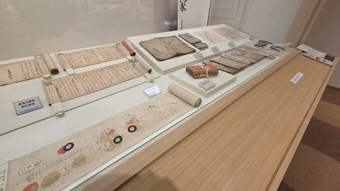 この企画展では桑島家に伝わる馬医術秘伝巻物や伝授書、獣医学校時代の教科書、診療に使われた医療道具など合わせて約70点が展示されています。