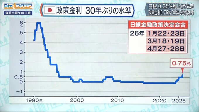 日銀は19日、委員全員の賛成で政策金利を0.25%引き上げ「0.75%」とすることを決定。1月以来7会合ぶりの利上げで、0.75%は1995年以来30年ぶりの高い水準だ。