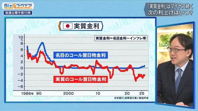 「名目の金利は30年ぶりの高さになったとはいえ、そこからインフレ率を差し引いた実質のコール翌日物金利を見るとマイナスの2%前後くらいなので、やはり依然として低い。この金利が低いということは、我々の預金金利も大体連動しているので『預金の利息がインフレに負けて元本が目減りしている』ということ。なので、お金はどうしても外に流れやすくなる」