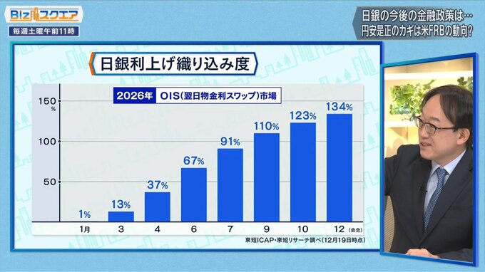 「基本は半年間隔ぐらいだが、政治との関係あるいは海外経済も見ながらとなると、半年よりずれるのではという見方。ただ、円安が進むと、その円安に追い詰められる形で春ごろの利上げというのもありえなくはない。円安による物価上昇を止めねばという利上げだが、そのスタンスだといつまでも物価が下がらない悪循環になる」