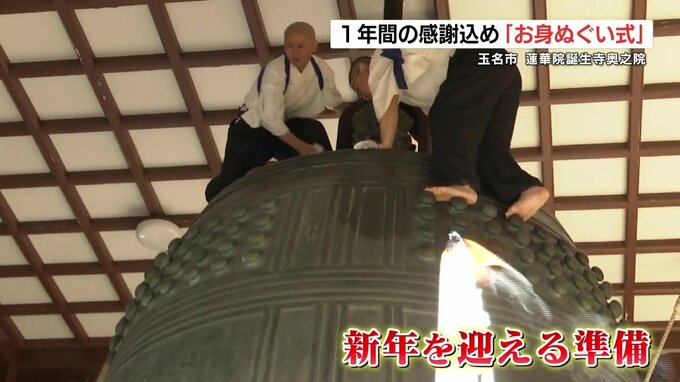 熊本県玉名市の寺院で、大梵鐘(だいぼんしょう)のすすを払う「お身ぬぐい式」が開かれました。