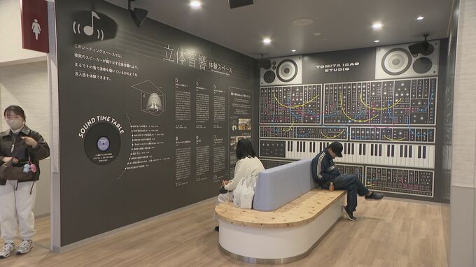 アウトレットパークには、世界で活躍した冨田勲さんの功績を紹介する展示も、しっかりと並べられています。