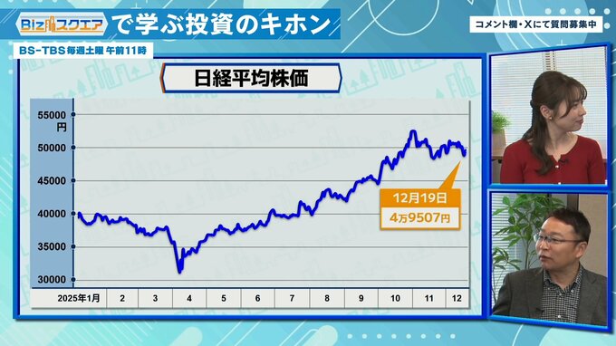 「2024年末(約4万円)⇒25年末(5万円前後)と、1年で25%はなかなかない上昇率。簡単に言うとAIが牽引したということだけど、“AIの牽引力は26年はさすがにスローダウンする”と思う。AIの代わりになるスタープレーヤーがいるかというと、軍事関連やウクライナの復興関連とか想定できるものはあるが、いずれも25年のAIみたいに力強く相場を引っ張っていくことにはならなさそう」