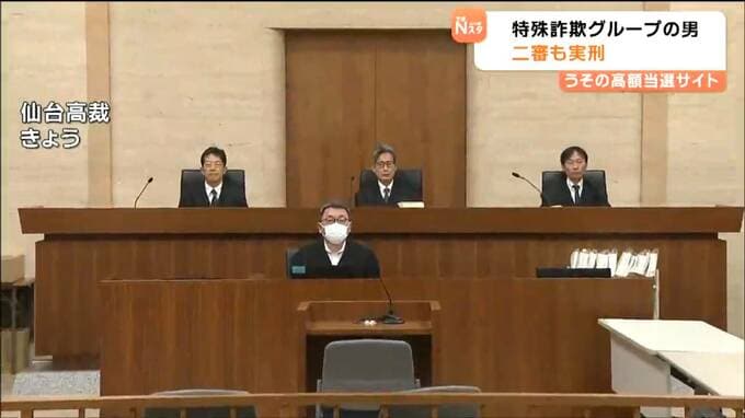 うその高額当選サイトなどを運営し金をだまし取った罪に問われている特殊詐欺グループの男の控訴審で、仙台高等裁判所は23日、事実誤認があったとして一審判決を破棄したうえで改めて実刑判決を言い渡しました。判…