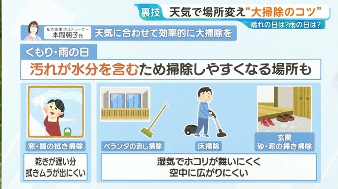 『大掃除は、天気によって場所を変えるのが効率的』です。