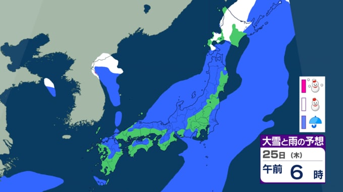 25日(木) クリスマス:気温急降下、夜は西日本で雪