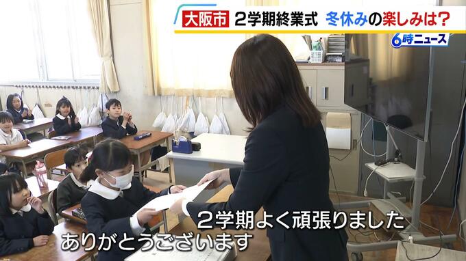 大阪市の多くの小中学校では終業式。12月24日から冬休みです。 大阪市では23日、市内の小中学校380校が2学期の終業式を迎えました。 このうち、鶴見区の榎本小学校は全校児童が859人と多いため、終…