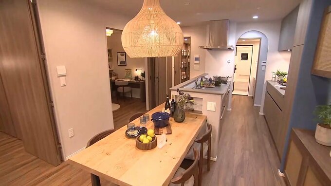 JR川口駅から徒歩7分の建築中のマンション「ルピアコート川口本町」。3LDKの温かみのある木目調の部屋は、壁の収納が隠し扉になっていて、遊び心も満載です。